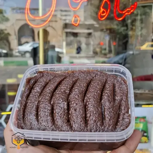 - شیره طبیعی: در انتها شیره انگور یا خرما اضافه شود تا حلوا به رنگ قهوهای تیره و غلیظ برسد.