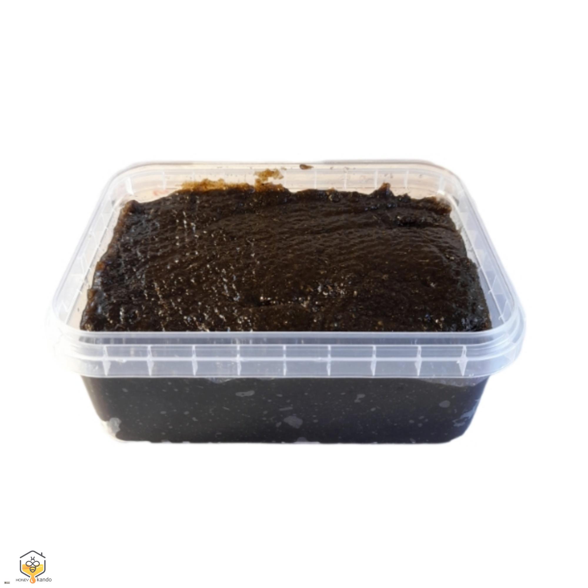- افزودن شیره طبیعی: شیره انگور یا خرما را بیفزایید و هم زدن را ادامه دهید تا حلوا سیاهرنگ و غلیظ شود.